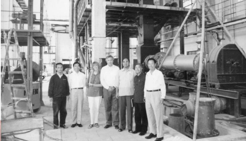 1989年,合肥院首臺自主開發(fā)的HRM1250原料立式磨成功投運,各項技術(shù)指標達到或超過設計要求,填補國內(nèi)空白。該成果于1993年通過建材行業(yè)部級鑒定,達到國際先進水平,隨后榮獲“國家級新產(chǎn)品”、“國家優(yōu)秀節(jié)能科技成果”和國家建筑材料工業(yè)局建材行業(yè)部級科技進步二等獎等一系列榮譽獎勵。圖為技術(shù)人員與院領導在該臺立式磨前合影