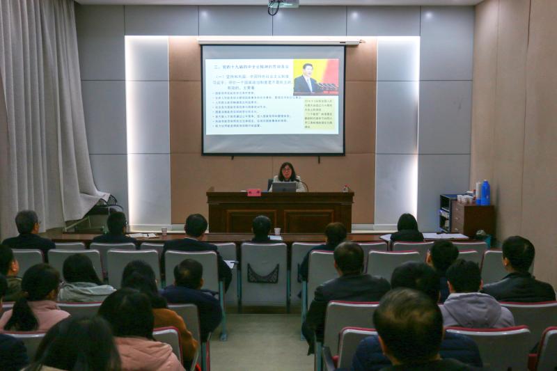 魏群教授圍繞黨的十九屆四中全會召開的時代背景、全會《決定》的體系內(nèi)容、全會精神的貫徹落實(shí)三個方面,深入闡釋了黨的十九屆四中全會的重大意義,闡述了中國特色社會主義制度和國家治理體系的顯著優(yōu)勢,對全會《決定》提出的總體要求、總體目標(biāo)和重點(diǎn)任務(wù)進(jìn)行了系統(tǒng)解讀,對如何貫徹落實(shí)黨的十九屆四中全會精神進(jìn)行了具體指導(dǎo)。宣講報告聚焦重點(diǎn)和關(guān)鍵,內(nèi)涵豐富、系統(tǒng)全面,深入淺出、鮮活生動、論述精辟,參加宣講報告會的黨員同志深受啟迪,倍受教育。