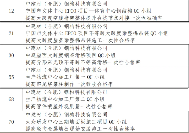 近日,在中國建筑業(yè)協(xié)會(huì)鋼木建筑分會(huì)主辦的2025年鋼木建筑行業(yè)工程建設(shè)質(zhì)量管理小組成果競賽中,中建材鋼構(gòu)公司憑借卓越的質(zhì)量管理成果和創(chuàng)新實(shí)踐,一舉斬獲多項(xiàng)榮譽(yù),充分彰顯了其在行業(yè)內(nèi)的領(lǐng)先地位和綜合實(shí)力。